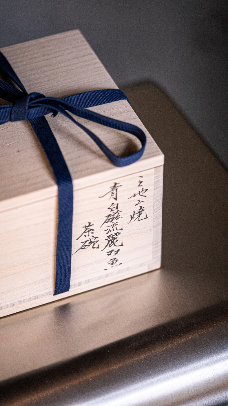 Chawan zapakowany w specjalnie przygotowane drewniane pudełka.
