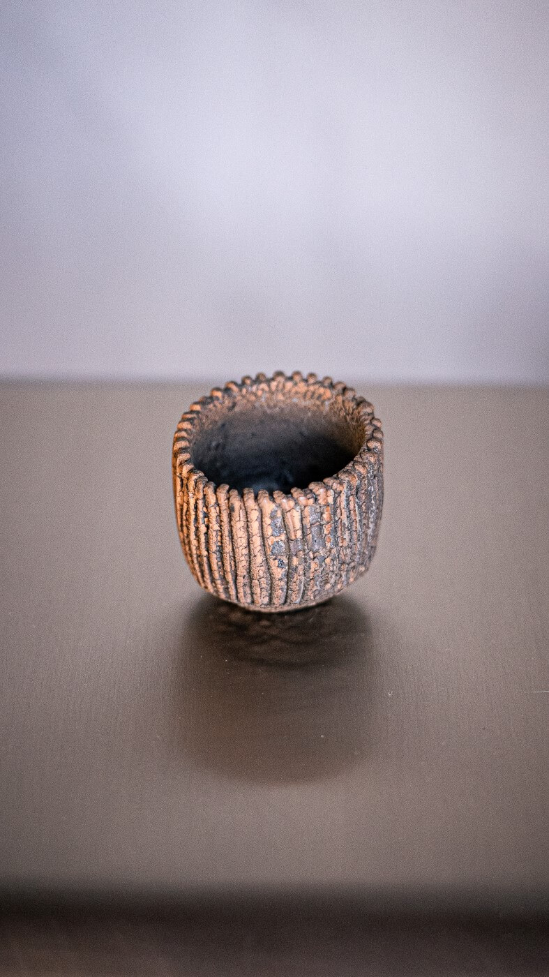 Rozmiary:  wysokość 6cm, średnica 6cm Materiał: Ceramika MASAHIKO ICHINO, czyli Artysta przez duże „A”, człowiek, którego dzieła wystawiane są w galeriach sztuki zarówno w Londynie, jak i w Nowym Jorku. Czerpie inspiracje z  tradycyjnej estetyki miejscowości Tambasasayama i przenosi ją na dzisiejsze warunki, dodając do tego swoją własną inwencje. Jego styl jest esencją nurtu wabi-sabi, doskonałość w niedoskonałości. W 1995 roku Masachiko Ichino dostał główną nagrodę na Japońskiej Wystawie Ceramiki, będąc wówczas najmłodszym laureatem w historii.